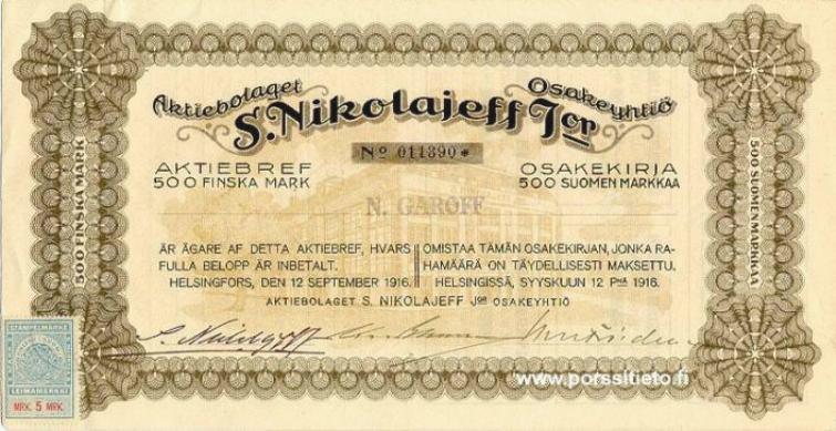 S. Nikolajeff J.or Osakeyhtiö 1916